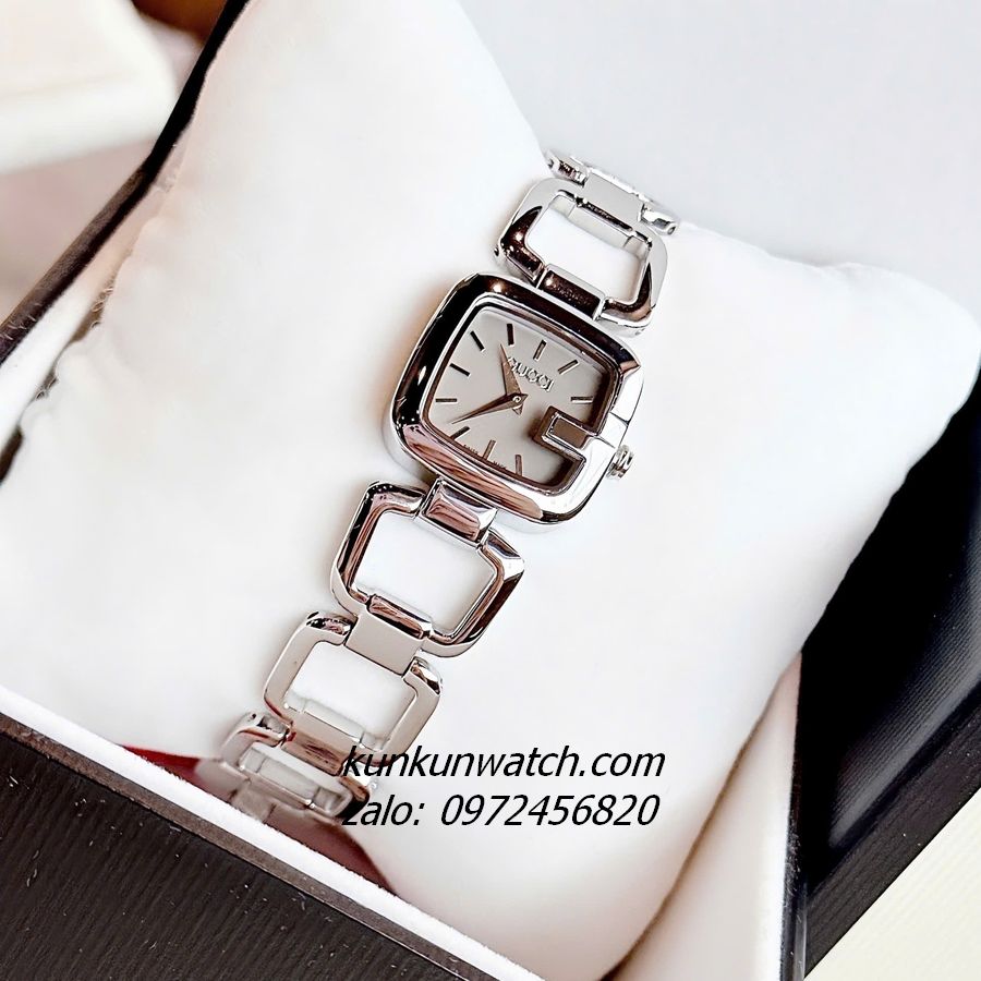 ◼️ Chiếc đồng hồ với kiểu mặt số dáng G-gucci đặc trưng thương hiệu. Điểm vạch 10 mốc giờ cùng kim chỉ giờ tông silver nổi bật trên nền mặt số xám. Dây đeo dáng lắc tay, mắc xích vuông cực thông thoáng, cá tính