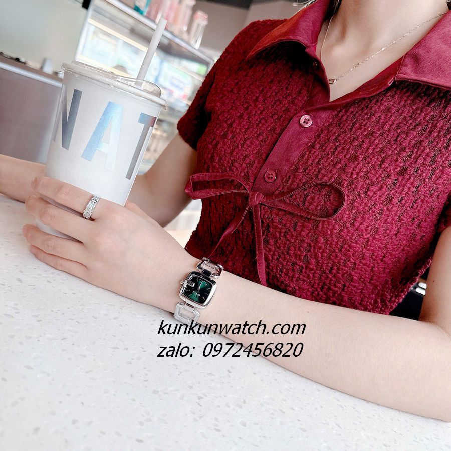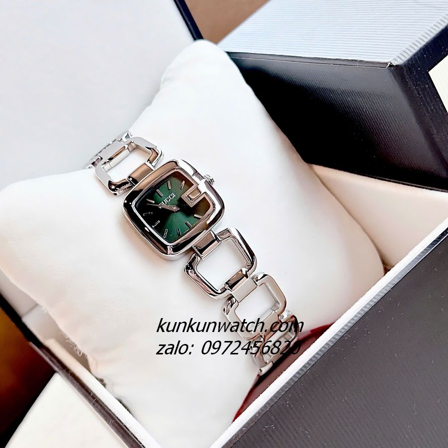 ◼️ Chiếc đồng hồ với kiểu mặt số dáng G-gucci đặc trưng thương hiệu. Điểm vạch 10 mốc giờ cùng kim chỉ giờ tông silver nổi bật trên nền mặt số xanh lá. Dây đeo dáng lắc tay, mắc xích vuông cực thông thoáng, cá tính