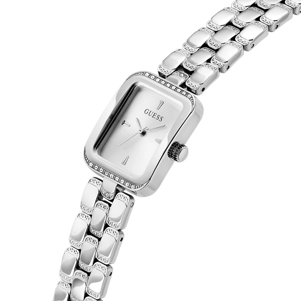 ✔️ Đồng Hồ Nữ Guess Damenuhr GW0865L1 mặt vuông chữ nhật đính đá viền, điểm vạch 4 mốc giờ, 3 kim hoạt động