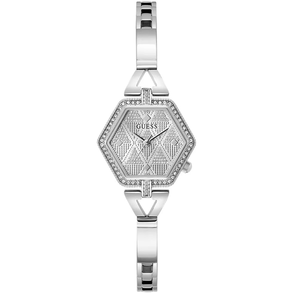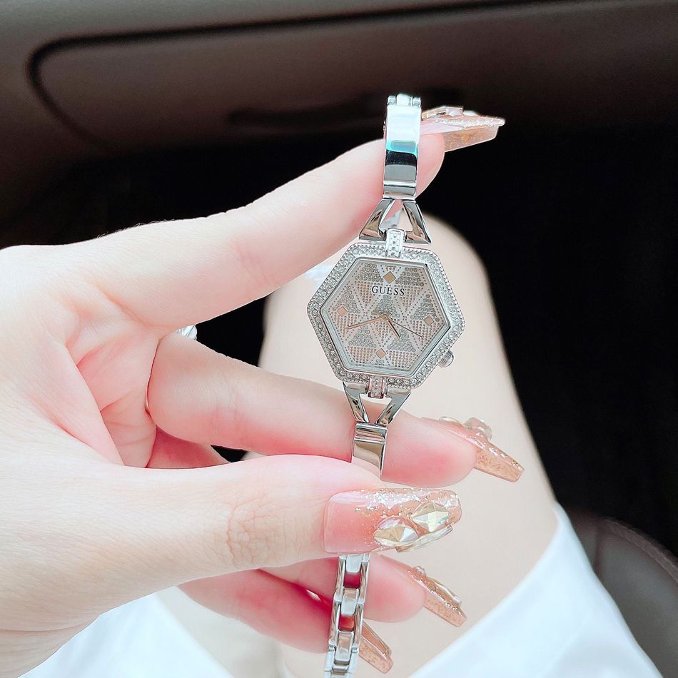 ✔️ Đồng Hồ Nữ Guess GW0680L1 mặt lục giác phối đính viền đá độc đáo. Nền mặt họa tiết tam giác đính đá ấn tượng. 3 kim hoạt động