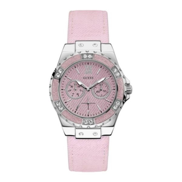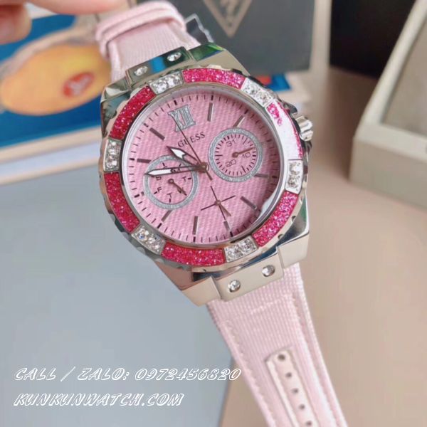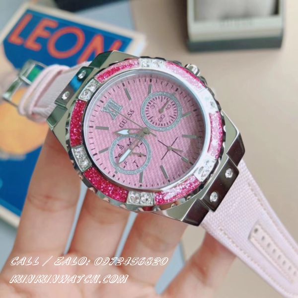✔️ Đồng Hồ Nữ Guess W0775L15 dây da mix vải tông hồng nhẹ nhàng, nữ tính