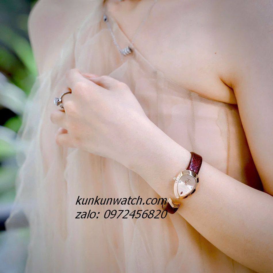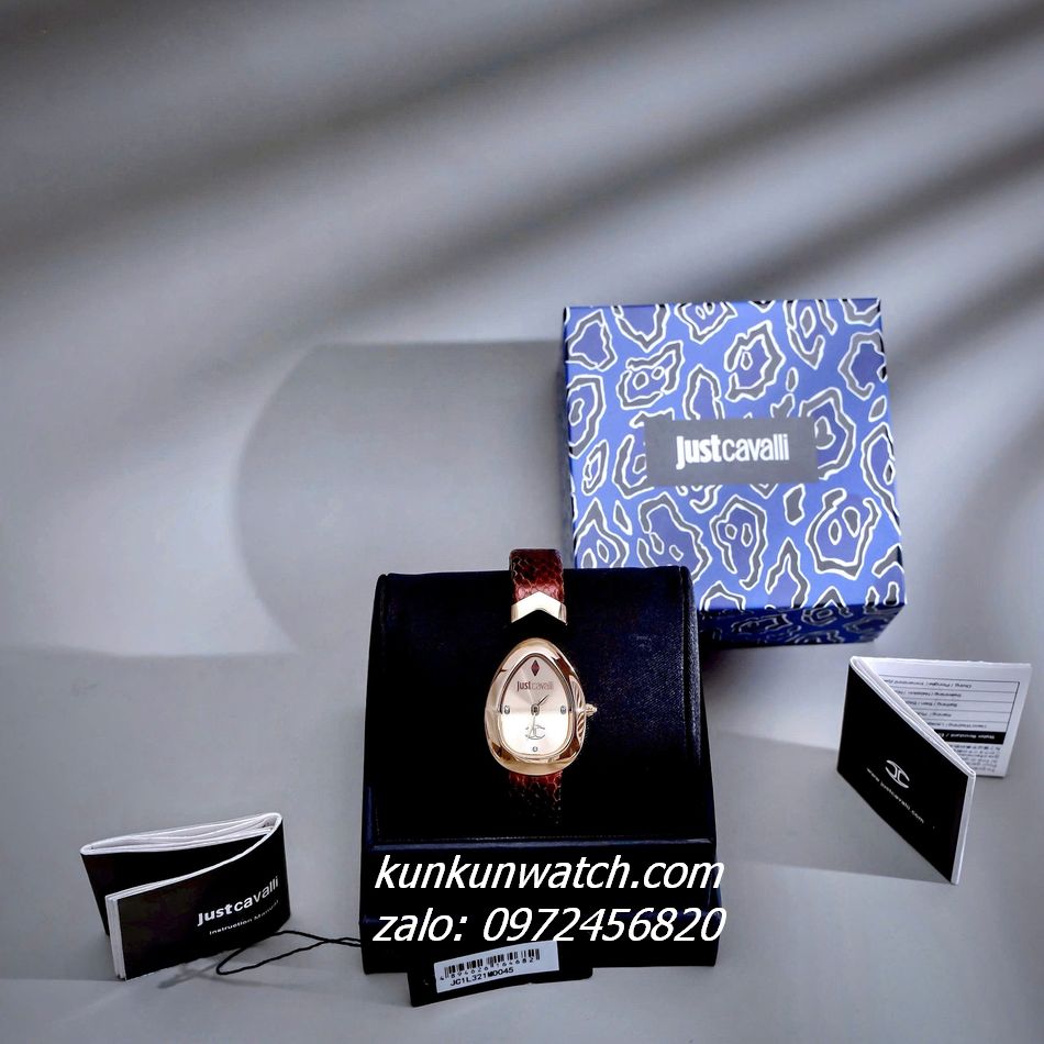 Đồng Hồ Nữ Just Cavalli JC1L321L0045 dáng kiềng, dây da vân rắn ( như chiếc vòng tay ) Mặt số hình ovan, điểm pha lê 4 mốc giờ, tên và biểu tượng thương hiệu
