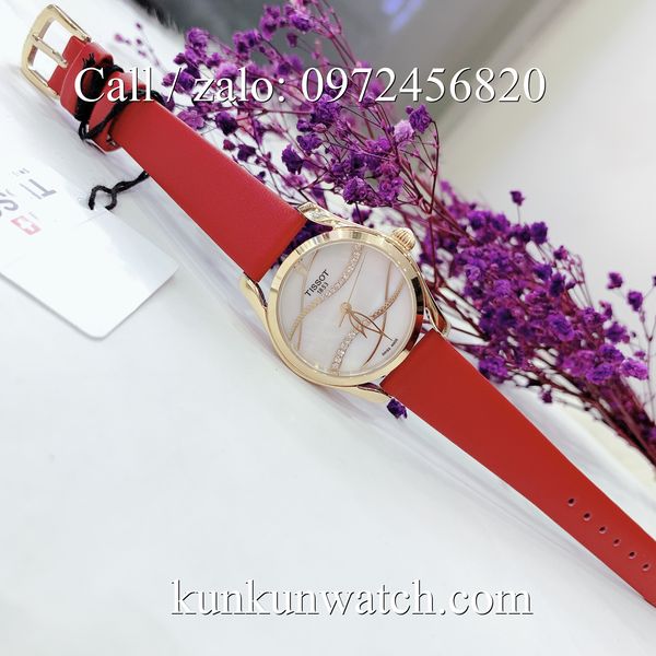 Đồng Hồ Nữ Tissot TSNDTC049 với nền mặt số đính hạt phá cách - dây đeo bằng da mềm mại, ôm tay, tạo nét sang trọng, thanh lịch.