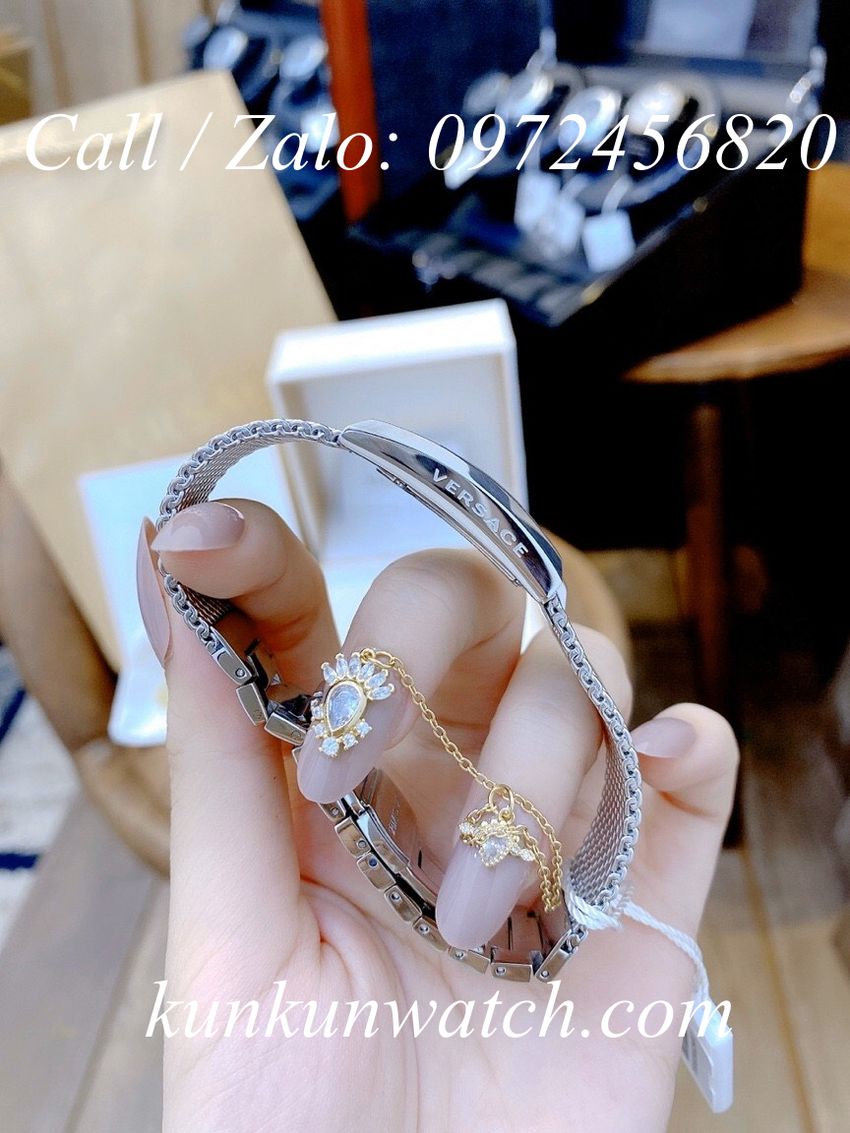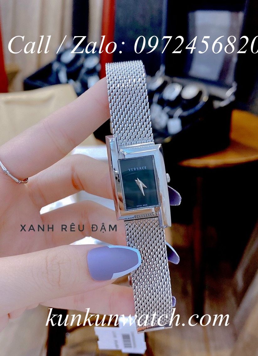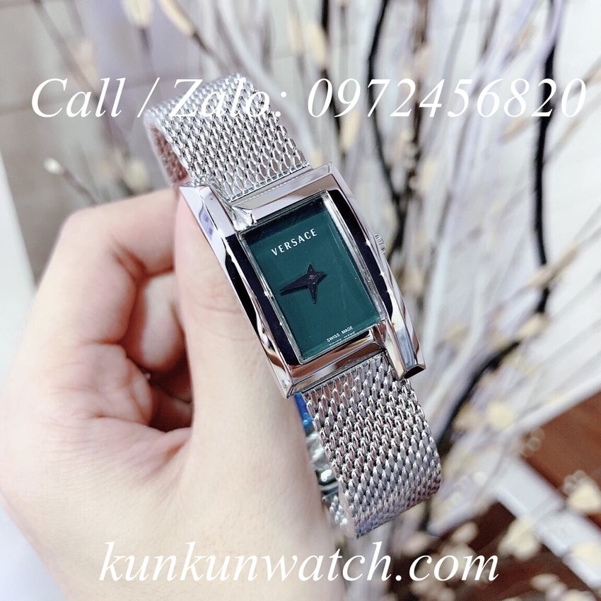 Đồng Hồ Nữ Versace Greca Icon có mặt số chữ nhật cách điệu. Thương hiệu Versace được khắc cạnh case đồng hồ tạo điểm nhấn đặc biệt, 2 kim chạy. Dây đeo kiểu dáng lưới ôm tay, sang trọng