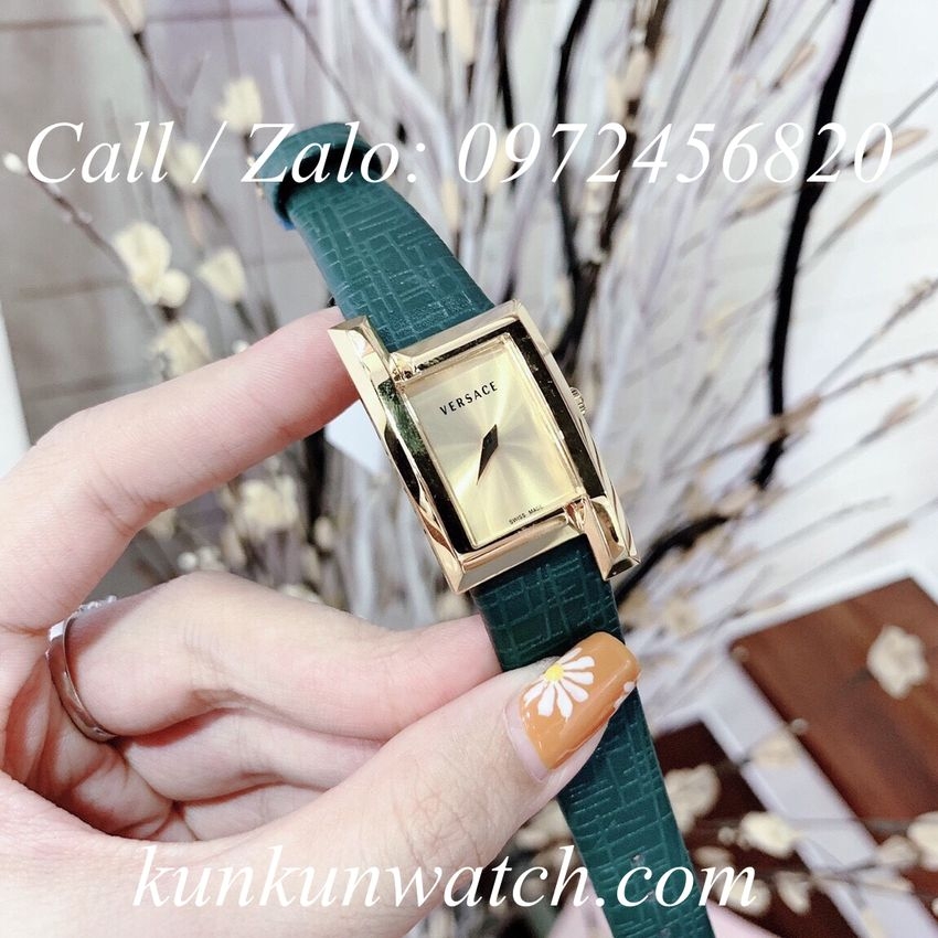 Đồng Hồ Nữ Versace Greca Icon - Dây Da Xanh Mộc Mặt Vàng - 39 x 21mm