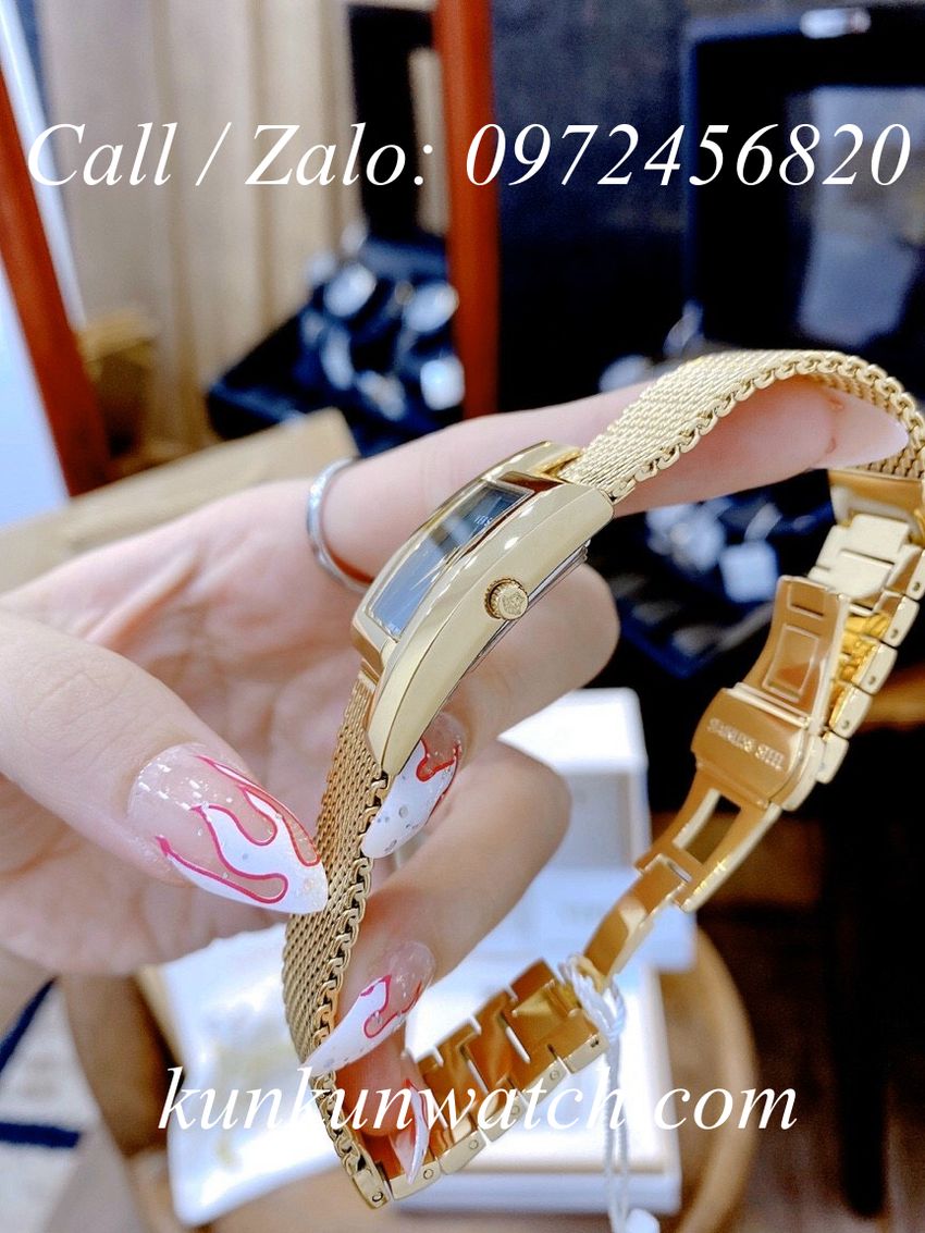 Đồng Hồ Nữ Versace Greca Icon có mặt số chữ nhật cách điệu. Thương hiệu Versace được khắc cạnh case đồng hồ tạo điểm nhấn đặc biệt, 2 kim chạy. Dây đeo kiểu dáng lưới ôm tay, sang trọng