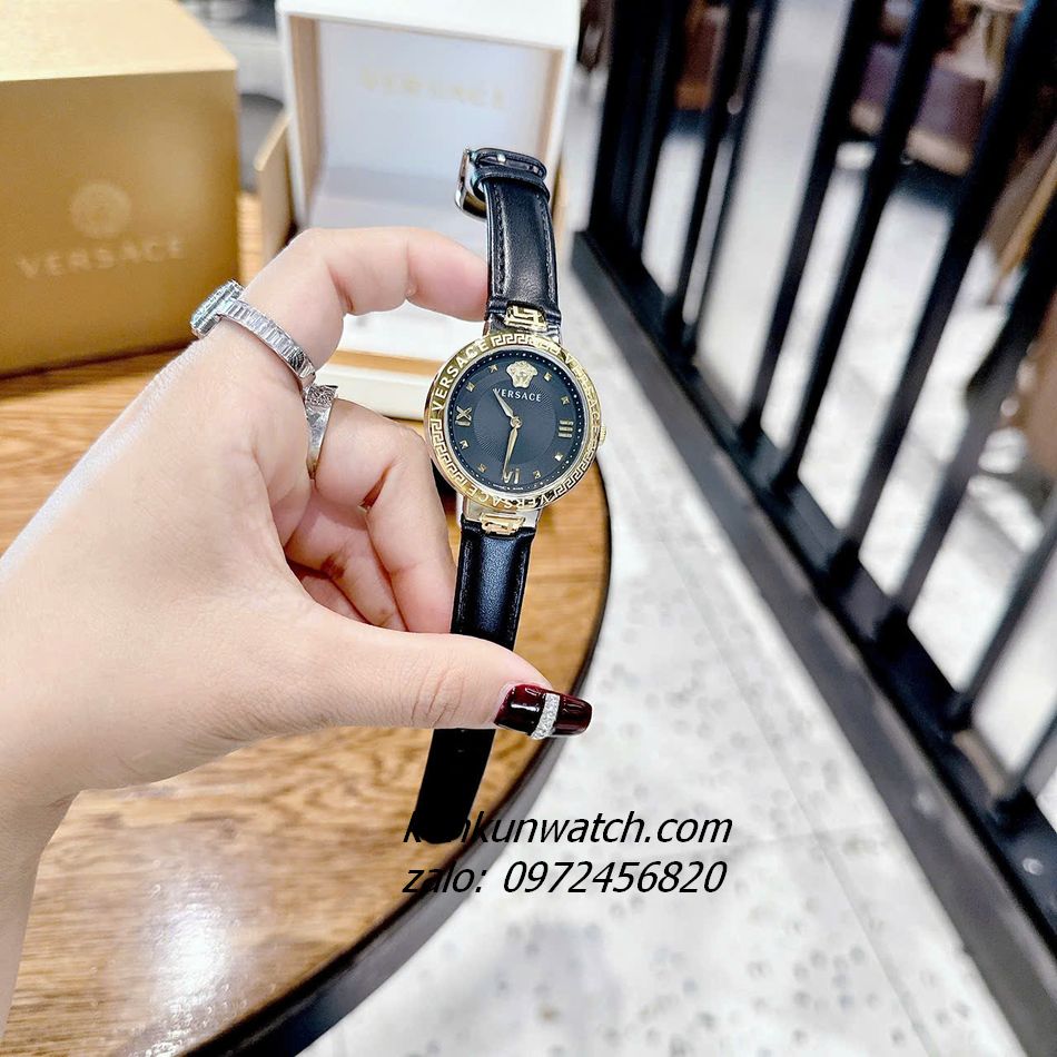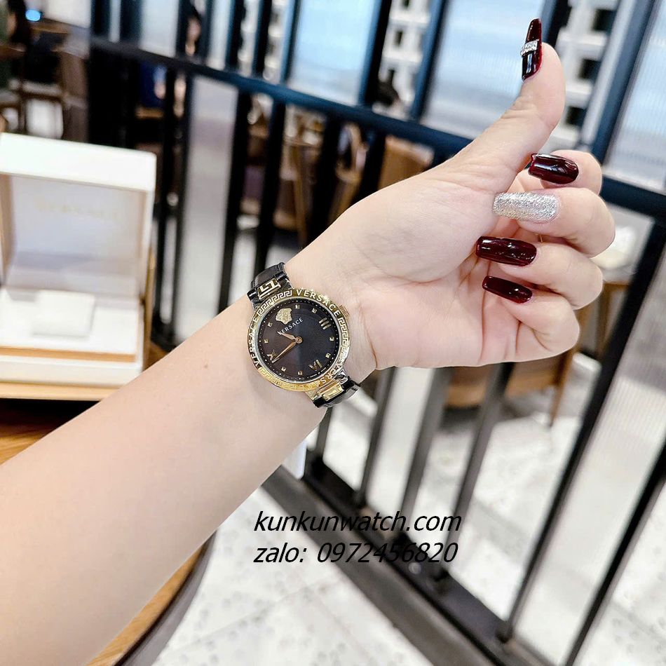 Đồng Hồ Nữ Versace Greca Strap Dây Da Đen Vỏ Demi 36mm