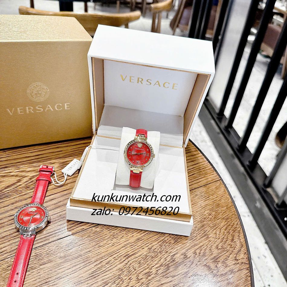 Đồng Hồ Nữ Versace Greca Strap Dây Da Đỏ Gold 36mm