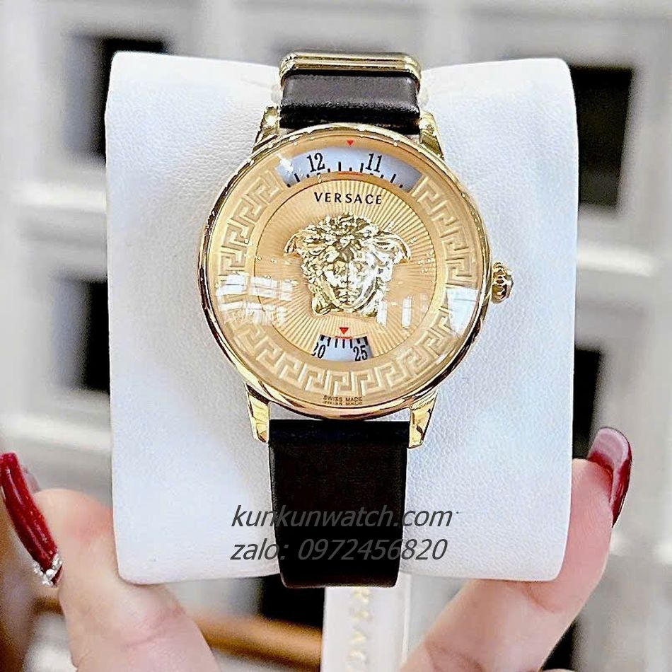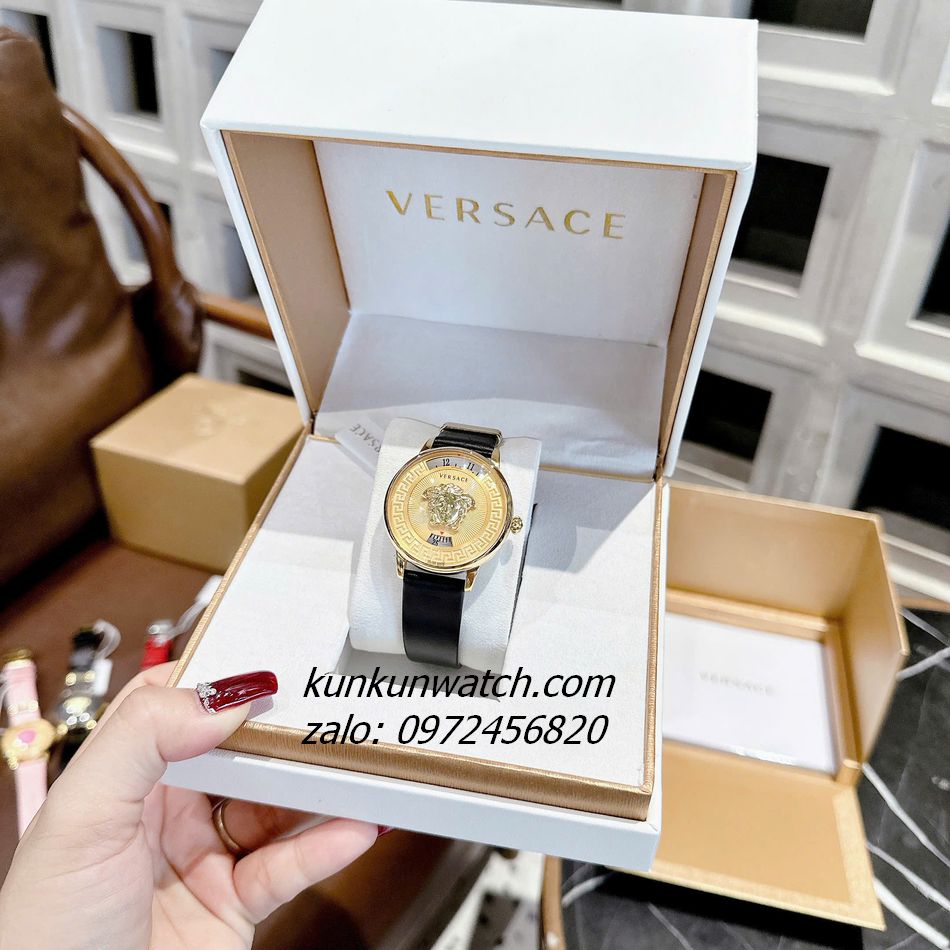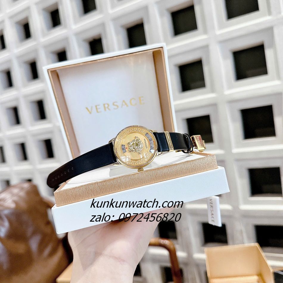 Đồng Hồ Nữ Versace Medusa Icon Dây Da Đen Gold Mặt Vàng 38mm