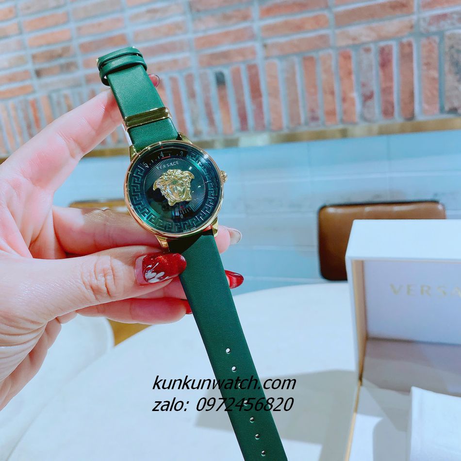 Đồng Hồ Nữ Versace Medusa Icon Dây Da Xanh Lá Gold 38mm