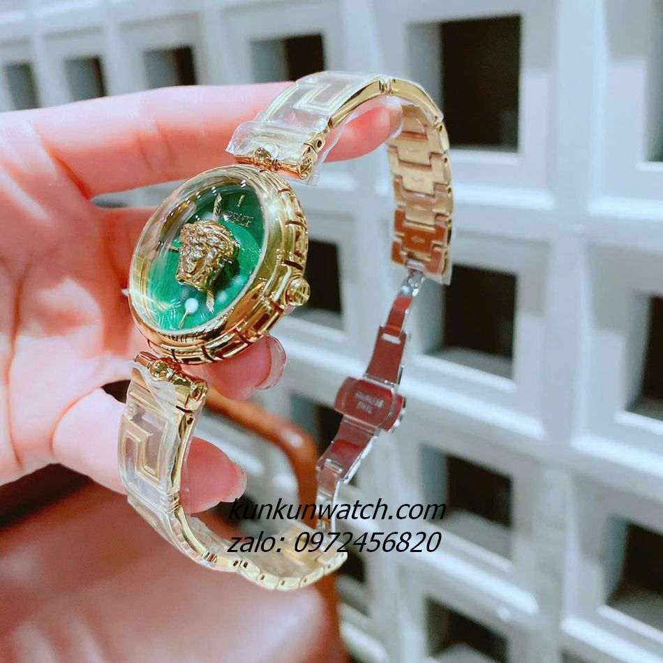 Đồng Hồ Nữ Versace Medusa Jewel Bracelet Quartz Gold Mặt Xanh Lá 34mm
