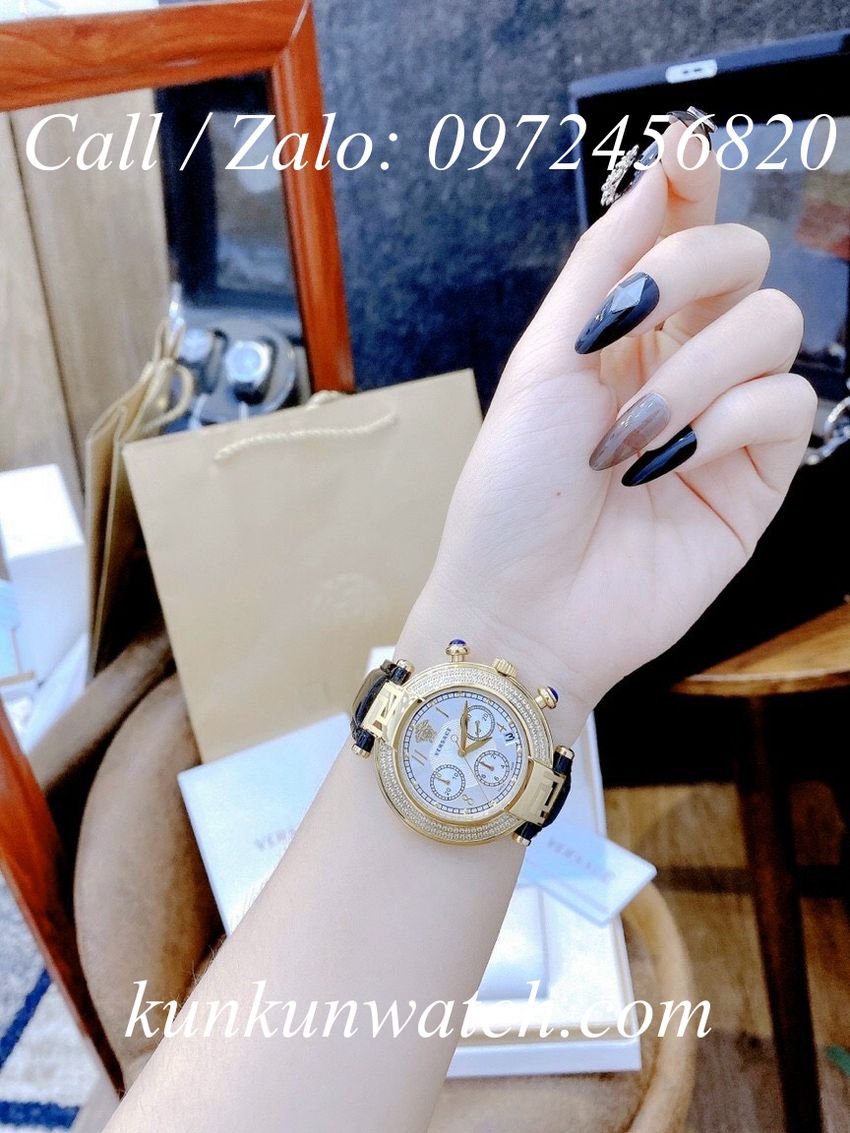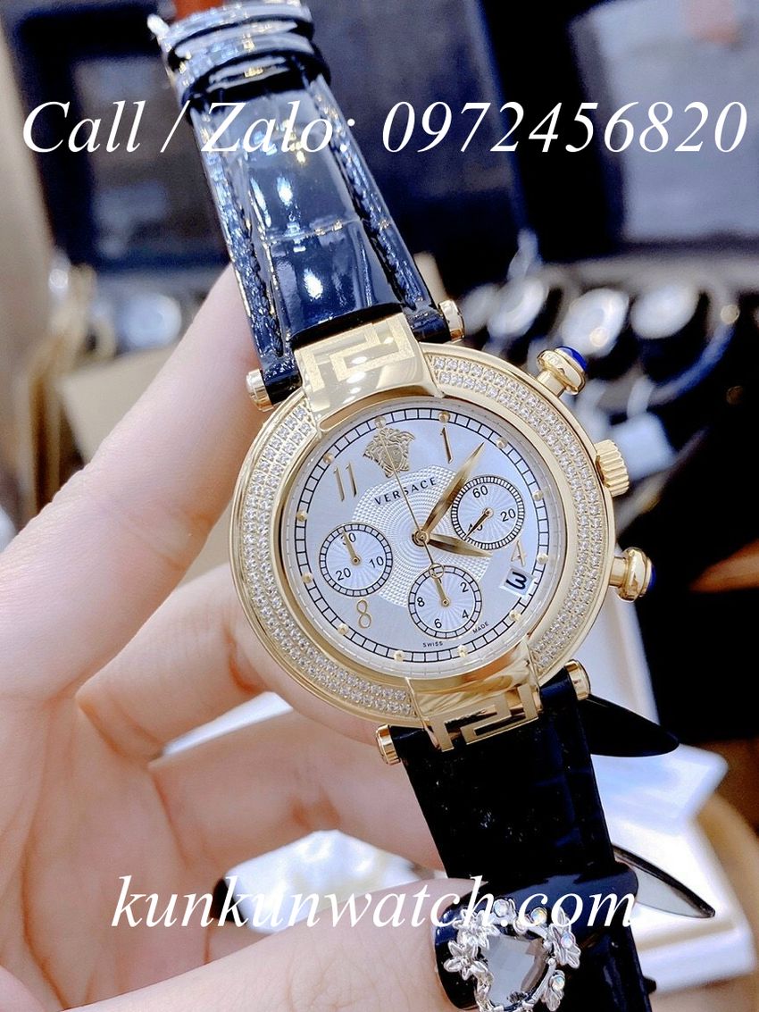 Đồng Hồ Nữ Versace Reve Chrono Mother Chế Độ Chronograph - Da Đen Mặt Trắng Vỏ Vàng - 38mm