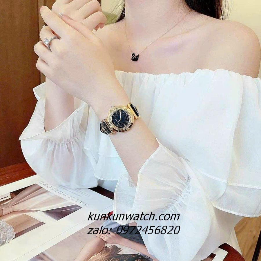 Dây Da vân cùng với 2 đinh ốc icon meddusa nổi bật, sang trọng