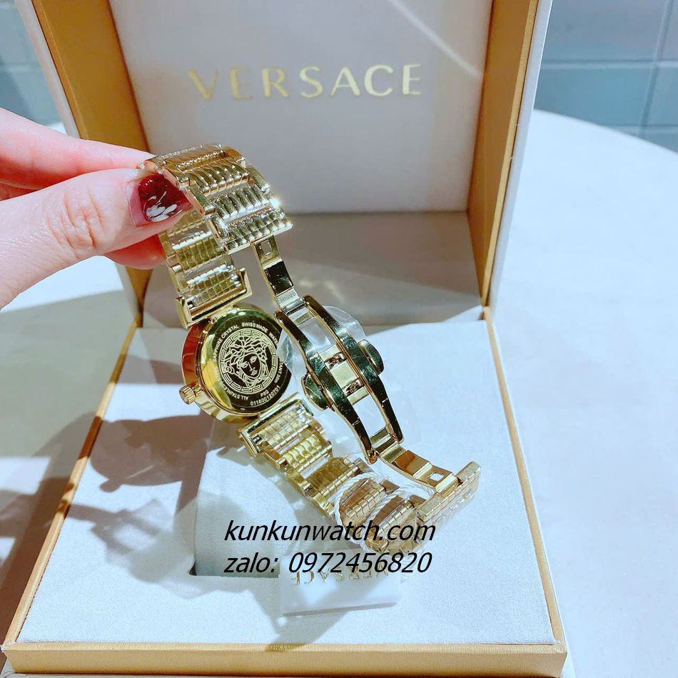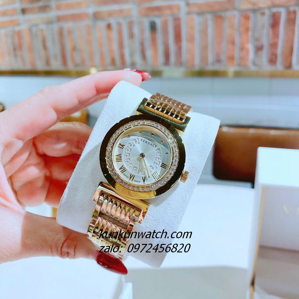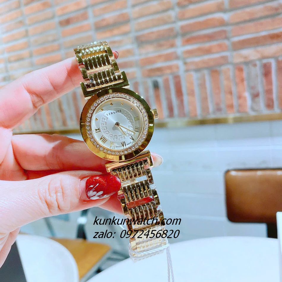Đồng Hồ Nữ Versace Vanity Gold Đính Đá Mặt Trắng 35mm