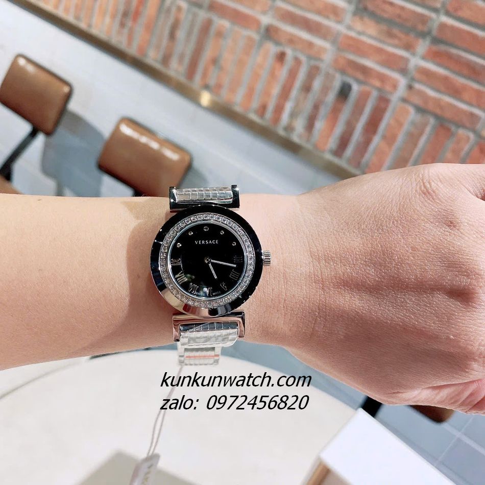 Đồng Hồ Nữ Versace Vanity Silver Đính Đá Mặt Đen 35mm
