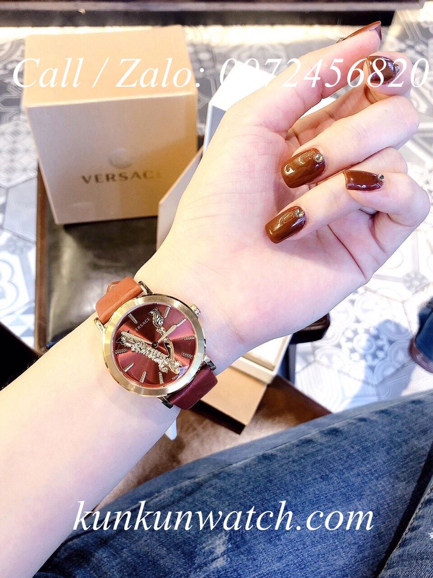 Đồng Hồ Nữ Versace Virtus nền mặt số chữ V tinh xảo, tỉ mỉ được lấy cảm hứng từ thiết kế baroque đầy tính thẩm mỹ. Kim, vạch số điểm giờ cách điệu, thu hút