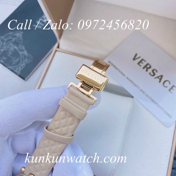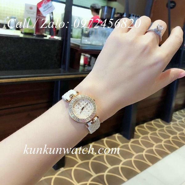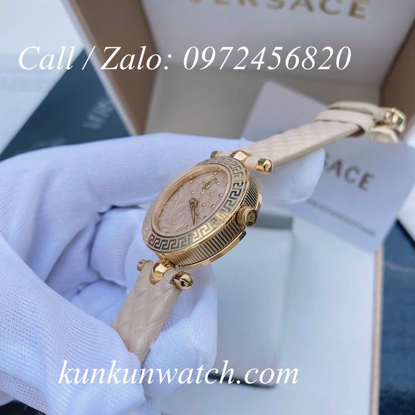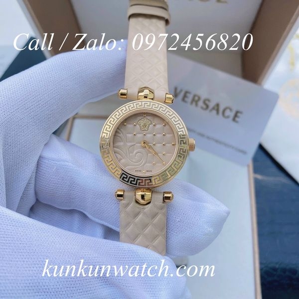 Đồng Hồ Nữ Versace Vanitas Mini thiết kế nền mặt số họa tiết phá cách cùng biểu tượng medusa thu hút, 2 kim chạy