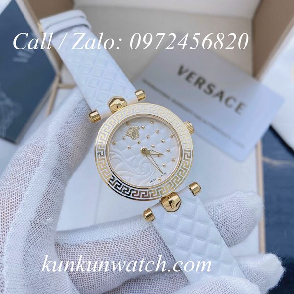 Đồng Hồ Nữ Versace Vanitas Mini thiết kế nền mặt số họa tiết phá cách cùng biểu tượng medusa thu hút, 2 kim chạy