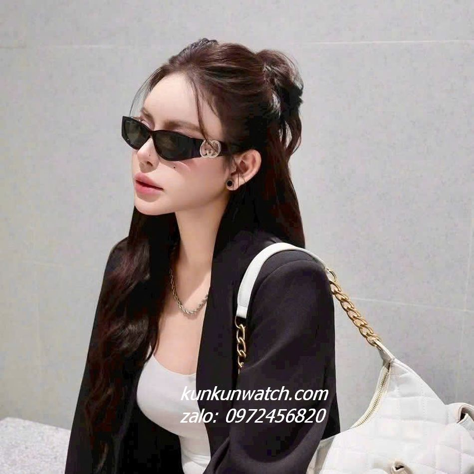 Kính Mát Nữ Gucci Fom Bầu Dục Gọng Nhựa Đen Chống Tia UV
